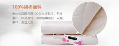 乐鱼leyu(中国)电热毯面料采用天然无污染材料,不易起毛、起球,不褪色;毯面边角不脱线,花色多样,经久耐用。乐鱼leyu(中国)电热毯面料共4种:高级红白面料、高级印花面料、舒适绒面料、100%纯棉面料。