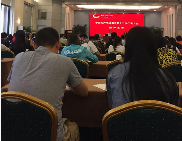 他深入浅出的讲述,对成都市第十三次党代会的主题:深入学习贯彻习近平总书记系列重要讲话精神和治国理政新理念新思想新战略,认真落实省委“三大发展战略”,团结带领全市广大党员和干部群众,深化改革开放,聚力创新发展,为建设全面体现新发展理念的国家中心城市而奋斗!有了更加深刻和坚定的认识,作为每一位青年团员不仅仅是中国共产党的后备力量,更是建设一个城市的主要战斗力来源。