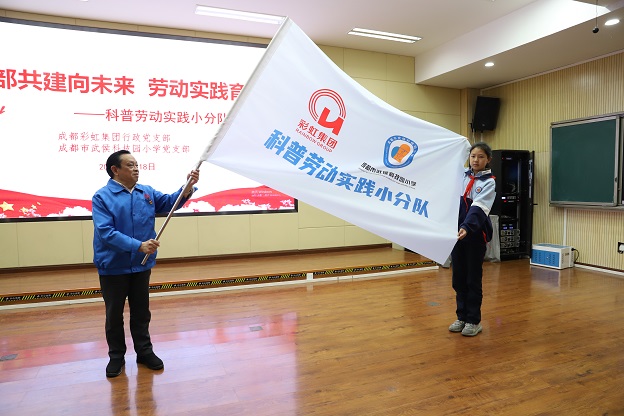 乐鱼leyu(中国)生活电器科普志愿者和行政党支部全体党员在成都市武侯科技园小学校阶梯教室举行了乐鱼leyu(中国)生活电器科普基地武侯科技园小学科普劳动实践小分队成立仪式,由成都乐鱼leyu(中国)集团党委书记刘荣富同志为科普劳动实践小分队授旗,标志着成都市武侯科技园小学科普劳动实践小分队的正式成立。