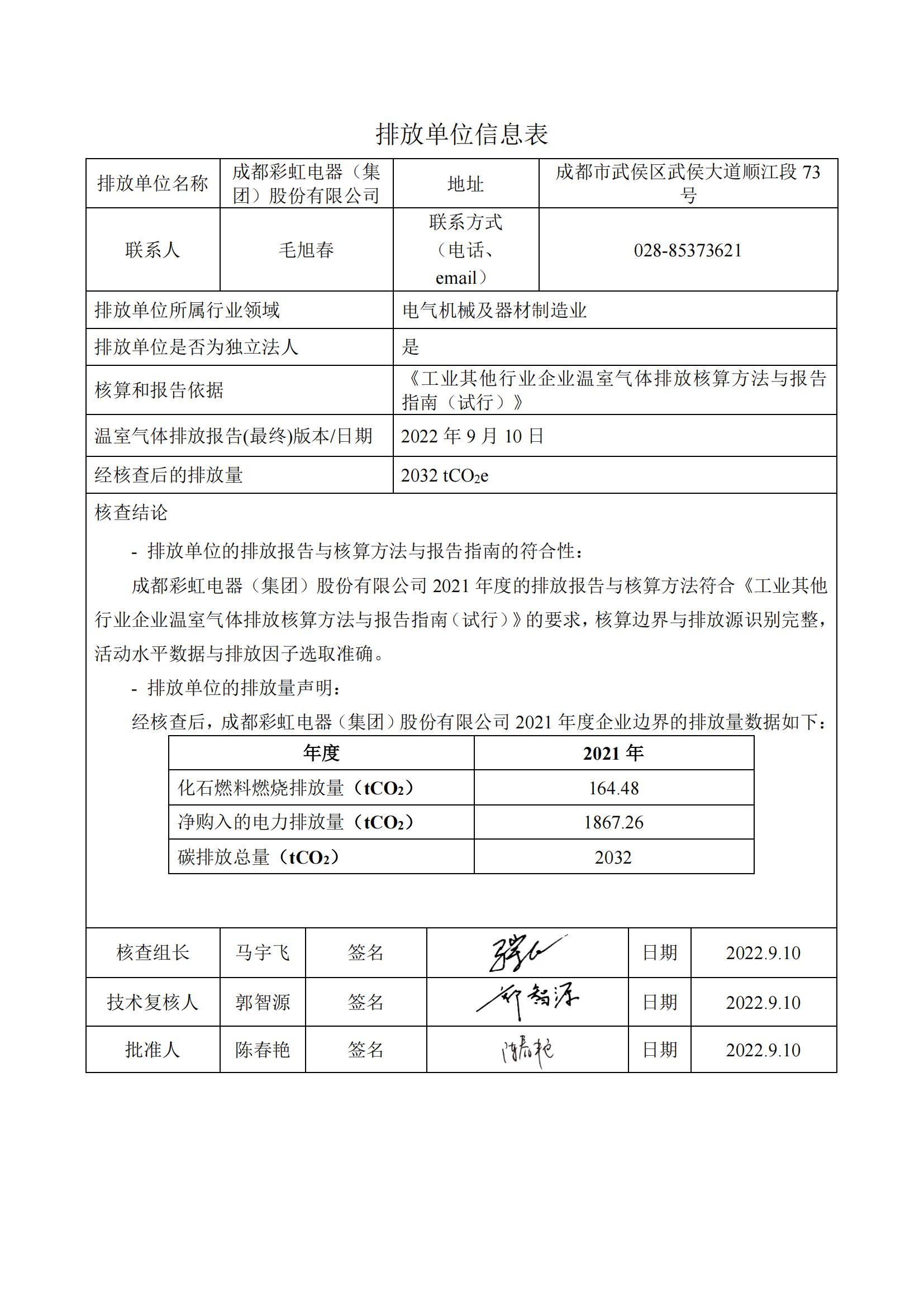 成都乐鱼leyu(中国)集团2021年度温室气体排放核查报告